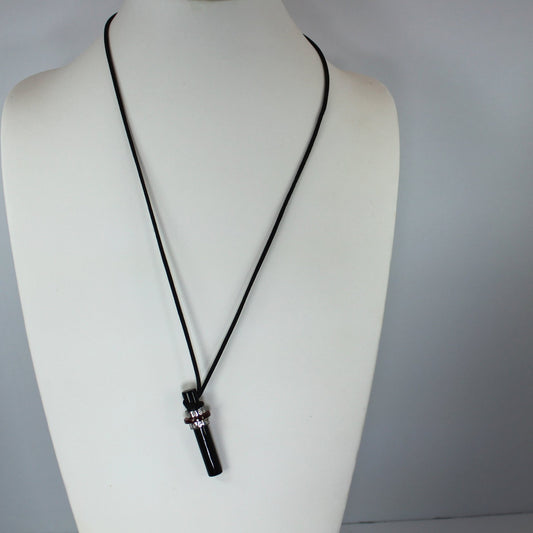 Black Red Glass Necklace Silver Bands Asian Symbols Modernistic