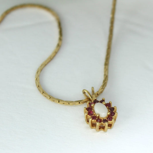 Costume Opal Ruby Necklace Gold Tone Chain Good Look