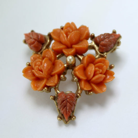 Old Mother of Pearl Pin C Clasp Ornate Surround