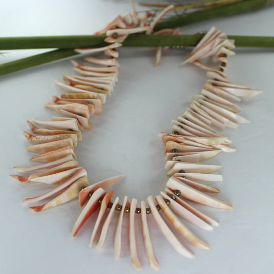 Cut Natural Shell Necklace Shades of Pink Silver Ball Chain