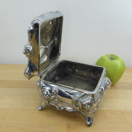 Weidlich Bros. Mfg. Antique Silverplate Jewelry Trinket Box Chest Roses