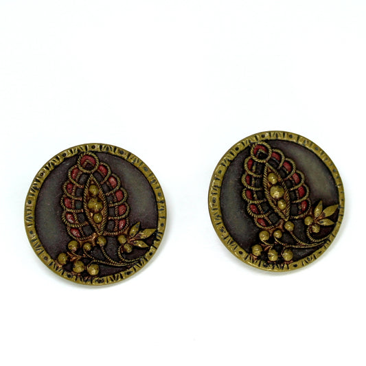 Antique Victorian Metal Buttons Earrings Post Stud Mixed Dimensional Metal