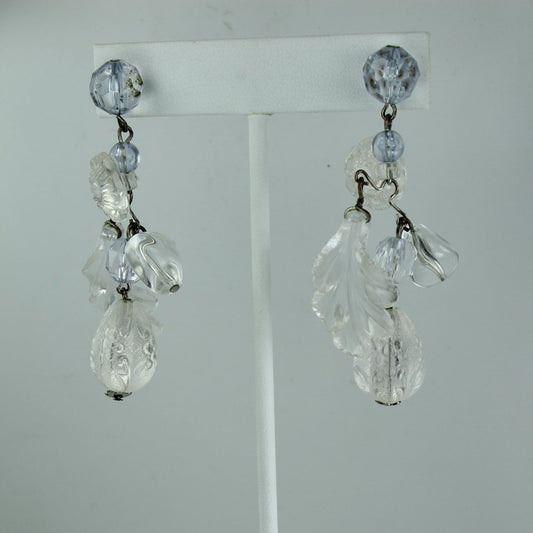 Chandelier Post Earrings Clear Hard Plastic Dangles 2 1/4"