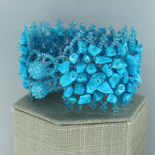 Turquoise Nugget Bracelet - Seed Bead Woven Base Artisan
