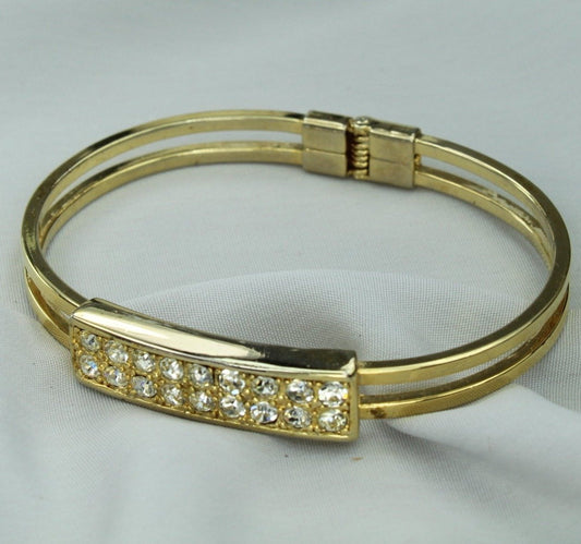 Brilliant Crystal Bracelet - Double Oval Gold Tone Modern Design