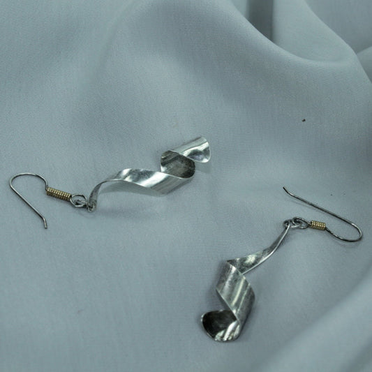 Wire Fish Hook Earrings - Sterling Silver Curled Ribbon