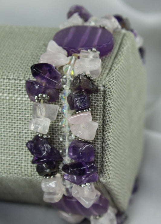Amethyst Aurora Borealis Gemstone Bead Bracelet - Stretches