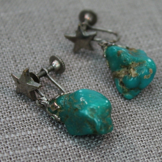 Turquoise Nugget Earrings - Star Dangle Screw Finding