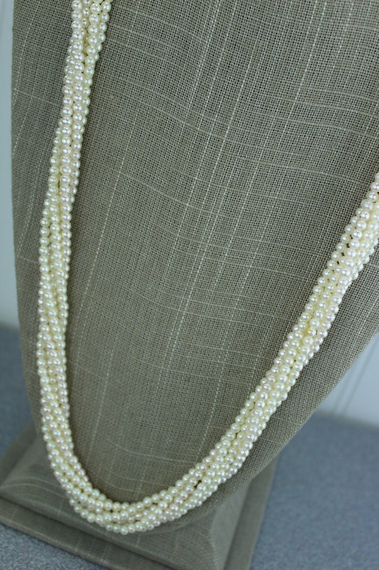 Faux Pearl Necklace - Three Strand Long Rope Push Lock - 16"