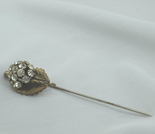Antique Rhinestone Stick Pin or Hat Pin Art Nouveau Cluster Leaves