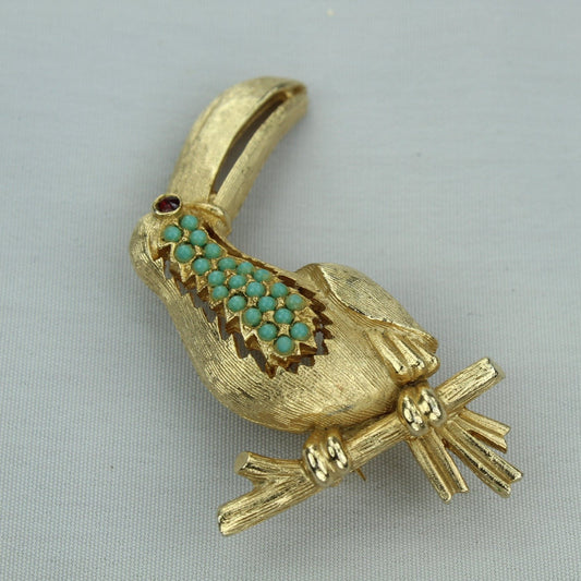 Toucan Pin Turquoise Color Beaded Gold Tone