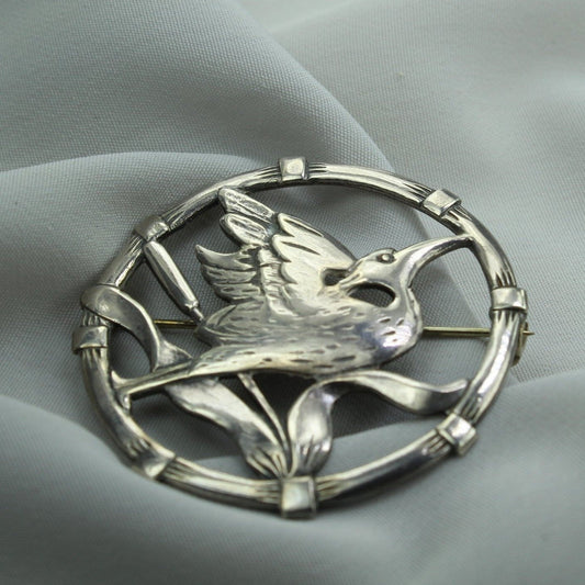 BRKS Sterling Silver Pin - Antique Crane Detail Dimensional