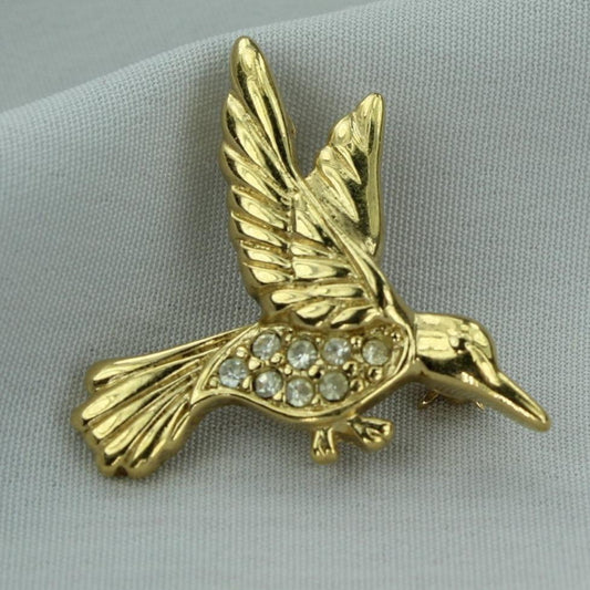 Trifari Mini Pin - Vintage Tiny Gold Tone Rhinestone Bird