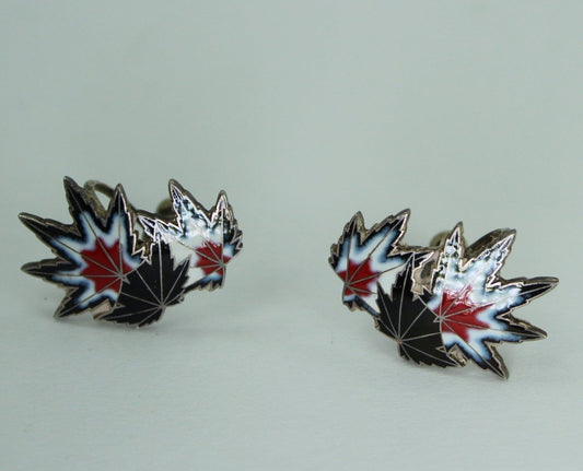 Silver & Enamel Screw Earrings - Modernist Leaves Black Red Denmark Style