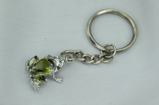 Silver & Green Frog Key Ring - Chain with Peridot Like Stones