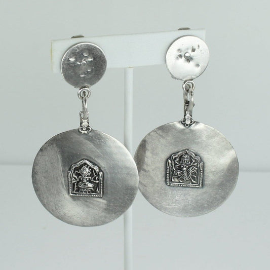 Silver Clip Earrings - Lovely Hindu Deity Large Medallion Dangle Finding