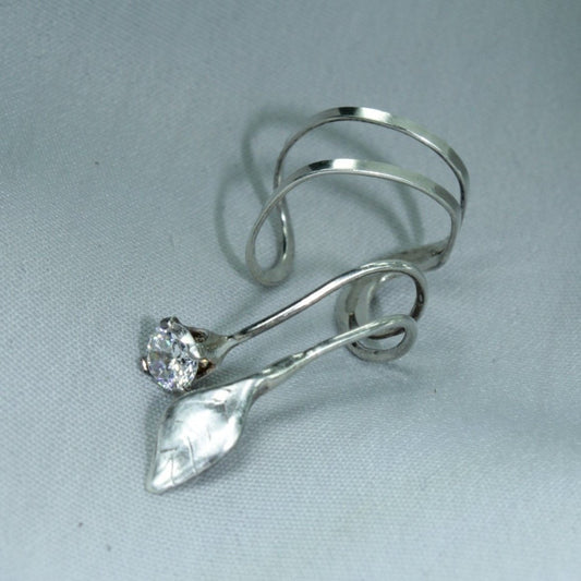 Wire Cuff Earring - Silver Crystal Leaf Wear Lobe Top of Ear