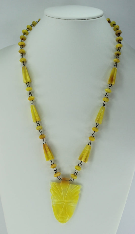 Artisan Necklace Yellow Stone Mask Pendant Bead Chain - 27"