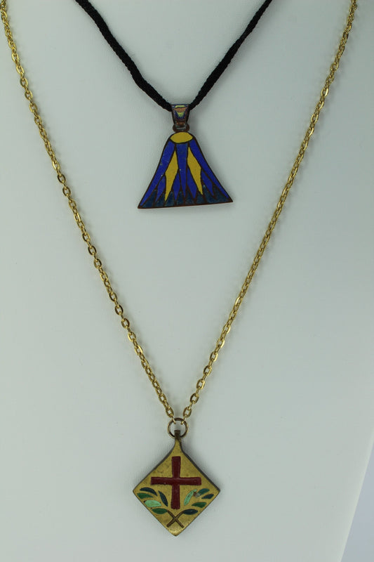 Terra Sancta Guild 1970 & OOAK Marked ES Enamel 1981 Necklaces - Pair (2) Vintage - 14" & 16"
