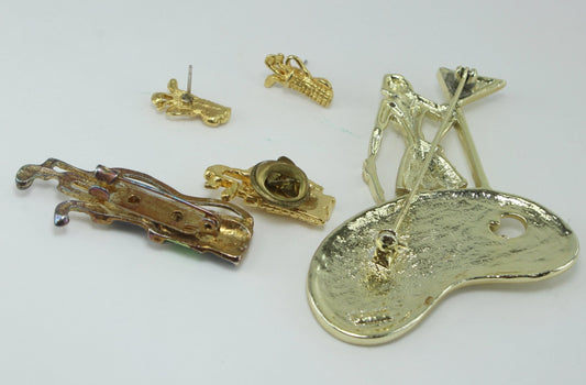 Golf Jewelry 4 Pieces AJC Pin Post Earrings Enamel Rhinestone Bag Pin Button FUN
