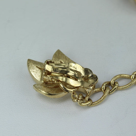 Crown Trifari Sweater Guard Coat Clip Gold Leaves