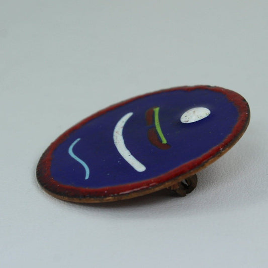 Enamel on Copper Pin Blue Red - Artisan Modernistic Design