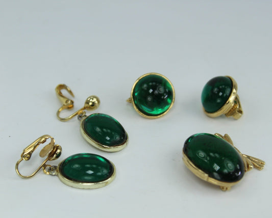 Two Pairs Clip Earrings Pin Green Jelly Belly Green