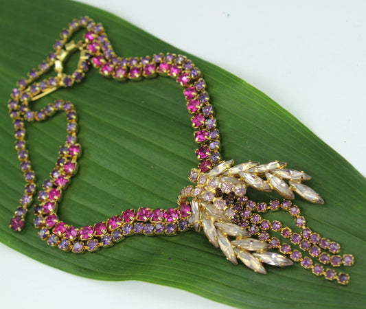 Amethyst Shades Necklace Dimensional Crystal Waterfall Design