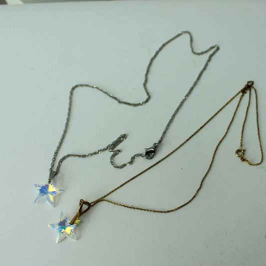 Pair 2 Crystal Star Hologram Necklaces Silver Gold Chains