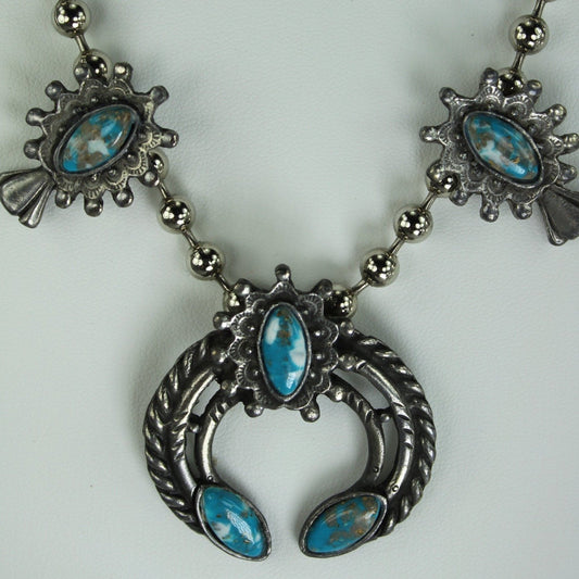 Squash Blossom Necklace - Faux Turquoise Art Glass Gold Flecks 24"