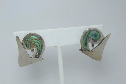 Rancho Alegre Sterling & Abalone Earrings - Modernist Miguel Garcia Menendez