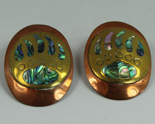 Bear Paw Mexican Copper Abalone Earrings Large Post Multi Metal