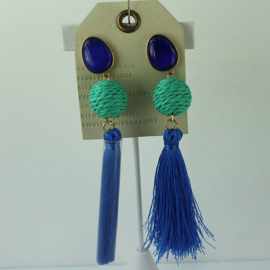 Anthropologie NWT Long Tassel Glass Bead Earrings 4 1/2" Lapis Blue Aqua