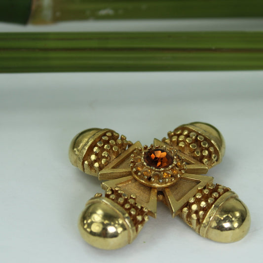 Benedikt NY Maltese Cross Pin Brooch Outstanding Amber Large Crystal Vintage