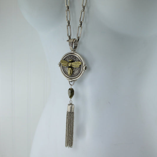 Rare French Kande Necklace Centennial Medallion Miel Stack Bee 30" Lizette Chain Tassel