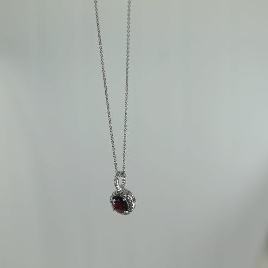 FAB Crystal Pendant Necklace Faceted Ruby Red Focal 925