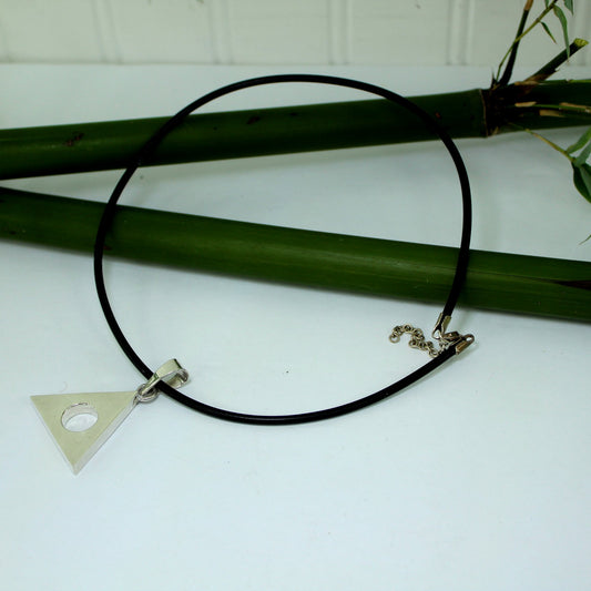 Sterling 925 Triangle Necklace Black Leather Cord Wt 11.8 grams