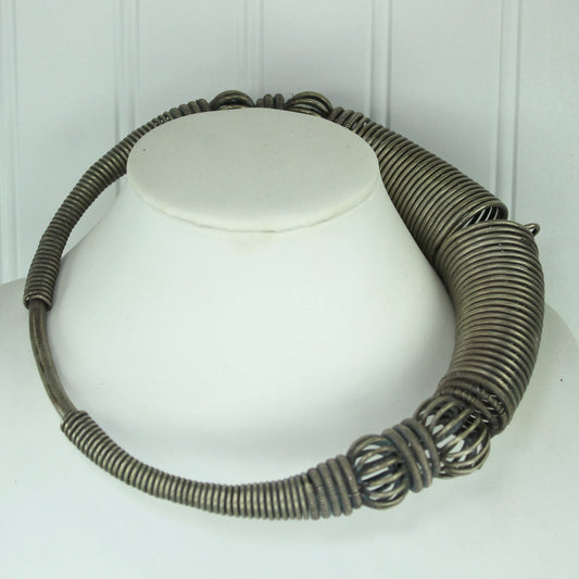 Amazing Vintage African Tribal Necklace Collar Refined Brutalist Heavy Metal Coil