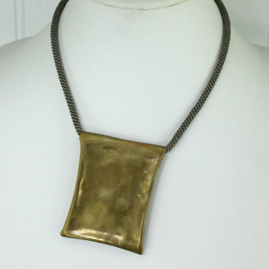 Vintage Moroccan Necklace Folded Brass Medallion Closure Coin King al-Hassan 1394 1974