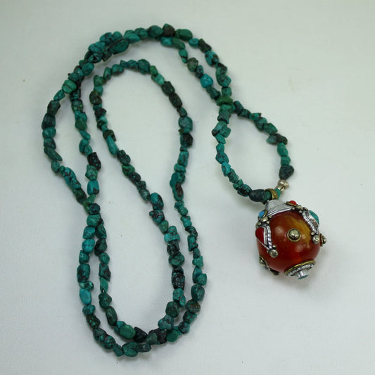 Turquoise Nugget Necklace Amber Color Bauble Pendant Turquoise Coral