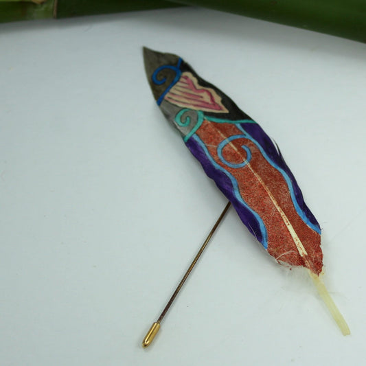 Artisan Vintage Painted Natural Feather Fanciful Stickpin