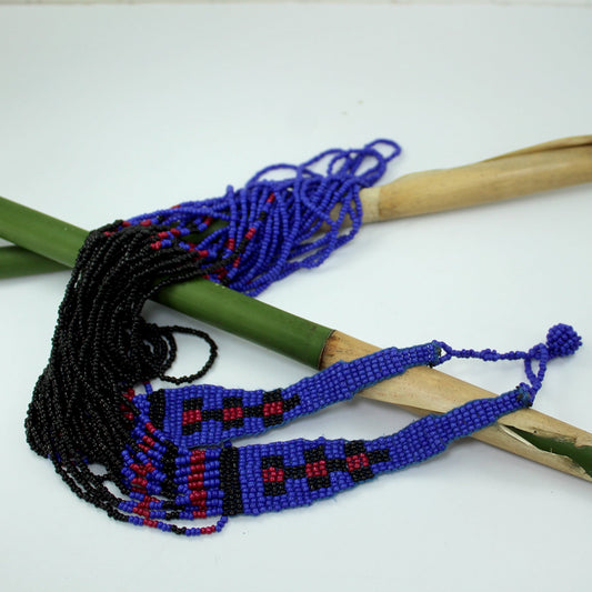 Seed Bead Necklace Waterfall Design 16 Strands Blue Red Black Indonesia