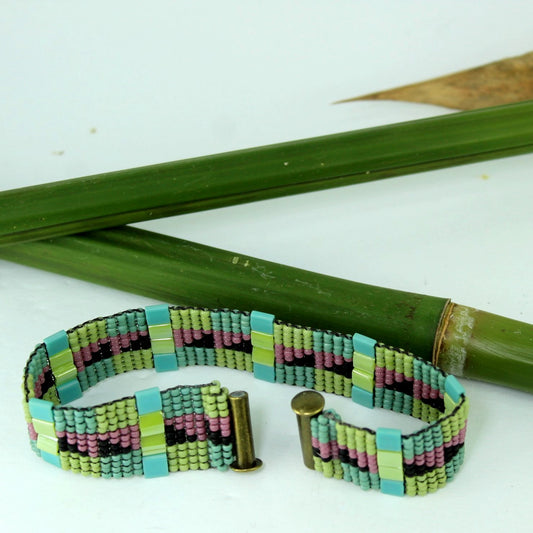 Artisan Seed Bead Loomed Bracelet Iridescent Square Beads Metal Closure