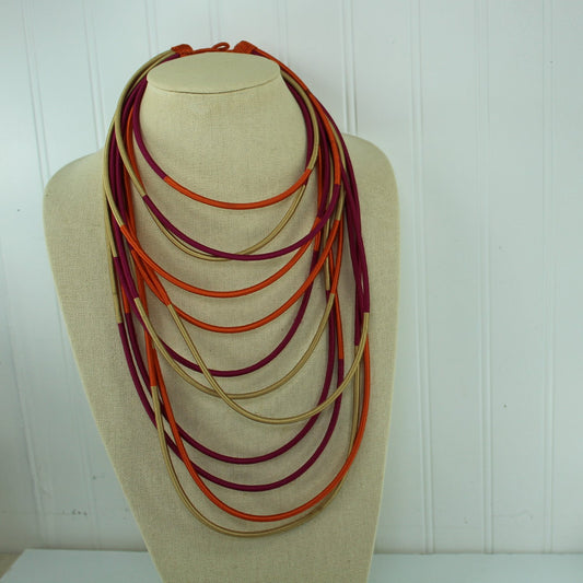 Wrapped Silk Cord Long Necklace 12 Strands Lush Colors Fuchsia Orange Beige