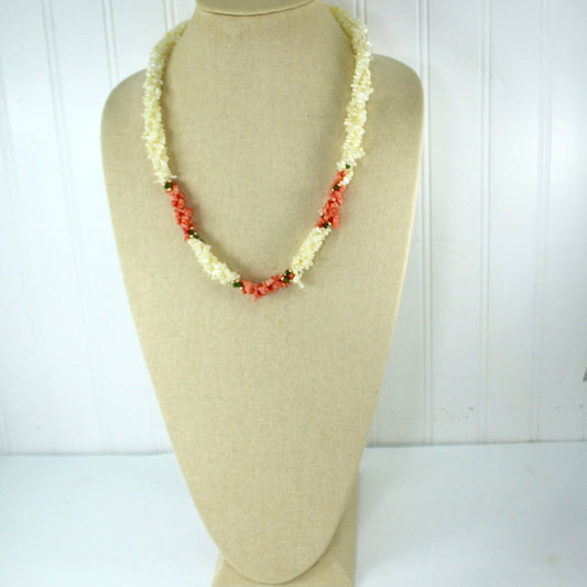 Elegant Twisted 3 Strand Pearl Shell Coral Jade Necklace 1970s Vintage Diferent