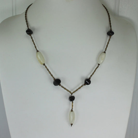 Chain Necklace Lavalier Design Vintage Art Deco Moonstone Onyx