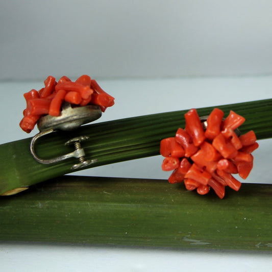 Branch Coral Cluster Vintage 1950 Screw Back Earrings Collectibles