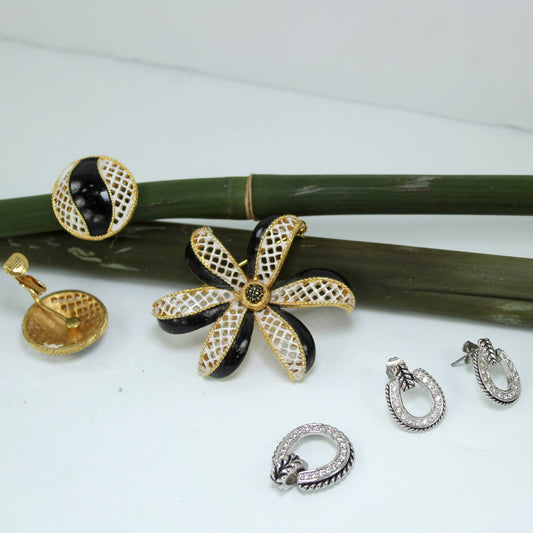 Collection Vintage Jewelry 2 Demi Parure 11 Pins Estate Wearables Bow Pearls RS