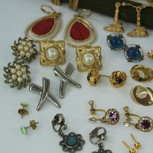 Collection 21 Pairs Earrings Screw Clip Post Unmarked RS Pearl Variety DIY Project