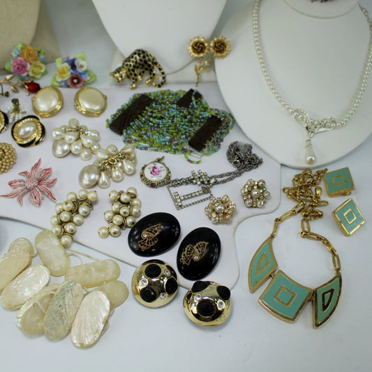 Vintage antique newer jewelry - necklaces, bracelets, earrings, pins, lots/collections for resale, sterling, gold, wedding, mid century, ethnic, Native American.